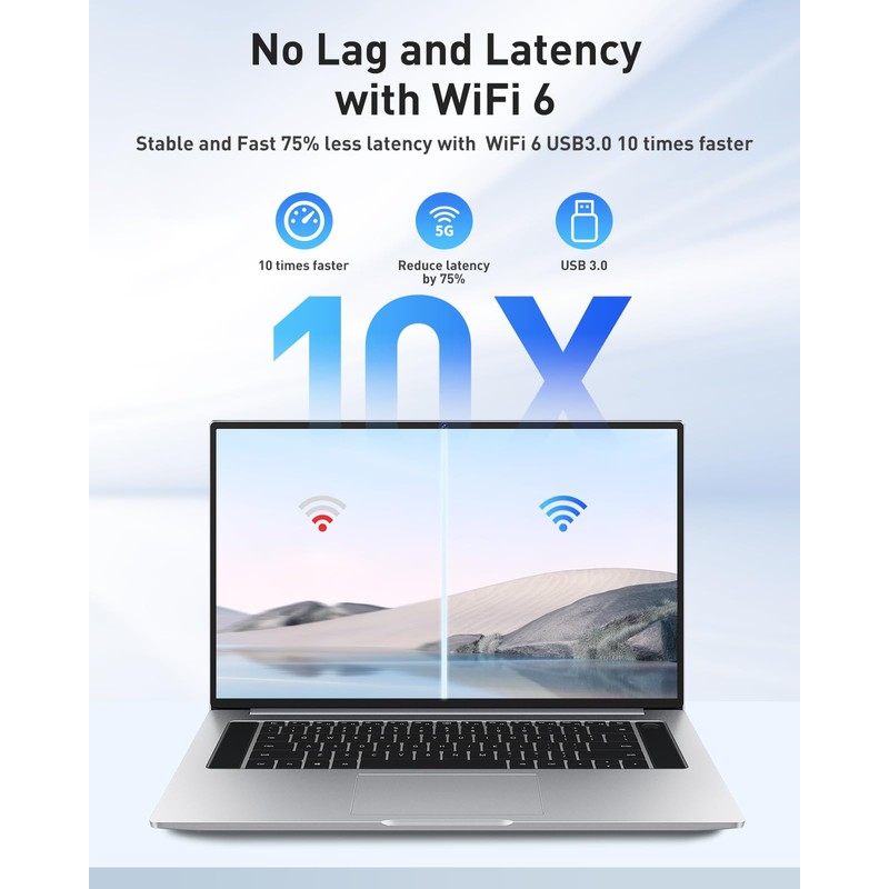 - Dual-Band 2.4GHz and 5GHz WiFi 6 Adapter - The 1800Mbps usb wireless adapter offers speeds of up to 1200Mbps on the 5GHz band and 576Mbps on the 2.4GHz band. The wireless usb wifi 6 adapter supports seamless dual-band operation, ensuring that the usb wireless adapter for pc maintains high-speed performance throughout its usage. The network stability of the wifi 6 usb adapter supports greater network flexibility, stronger signals, ultra-low latency, and there will be no buffering or interruptions