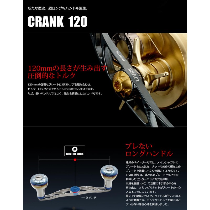 • Handle Model: Crank 120... Long double handle for baits with a center lock system that provides a comfortable wound without shaking, and an overwhelming torque performance of 4.7 inches (120 mm)