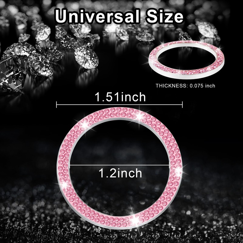 - Universal SizeThis rhinestone car decoration accessories diameter is 1.53 inch; inner diameter of the ring is 1.2 inch; thickness is 0.115 inch.Fits most cars, SUVs, MTVs with ignition start button.