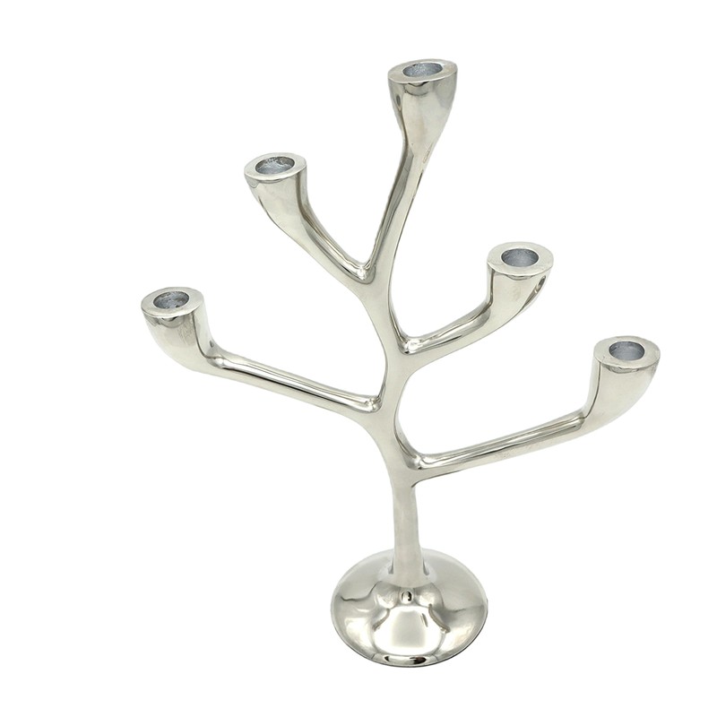 LivuX 5-flammiger Design-Kerzenständer – Vernickelter Aluminium-Kerzenhalter in AST-Optik für Stabkerzen Ø 2 cm, 28x10x35 cm – Edle Tischdeko