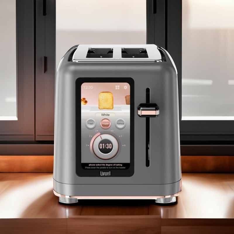 Livwell Touch IQ Matte Grey 2-Slice Toaster with High-Resolution Touch Screen - Kitchen Gifts - 10 Bread Settings, 6 Browning Levels, Multilingual Options, Ideal for Bagels, and Multigrain Bread