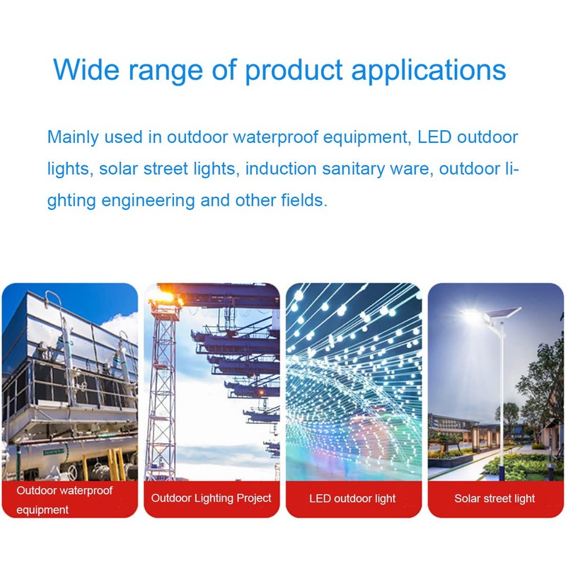 • Can be used for solar lights, garden street lights, LED lighting waterproof connectors, induction hygiene pottery, outdoor lighting projects, etc