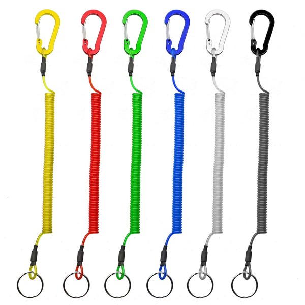Lix&Rix Color Fishing Lanyards Fishing Tool Pole Safety Coiled Lanyards Retractable Wire Inside with Carabiner, 6pcs