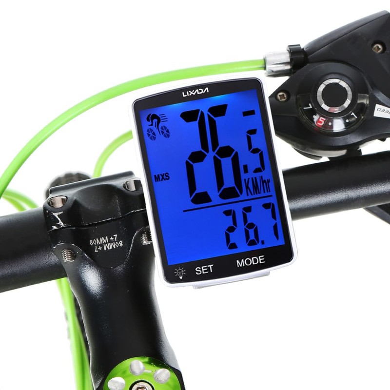 Lixada Bike Computer Wireless Multifunctional LCD Screen Bicycle Computer Bike Rainproof Speedometer Odometer Cycling Waterproof with Backlight,Temperature,Stopwatch Consumption (White Shell-Blue)