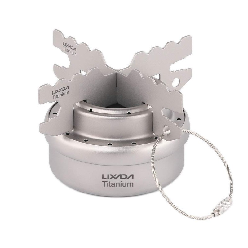 Lixada Mini Titanium Liquid Alcohol Burner Ultralight Titanium Camping Stove Portable with Cross Stand Rack