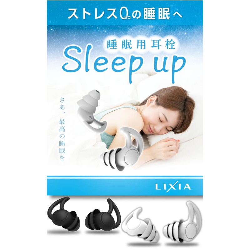 【睡眠のプロ監修】LIXIA 睡眠用耳栓 耳栓 睡眠用 2ペアセット ケース付き 5段階サイズ調整 Sleepup 33db低減 S M 2サイズセット