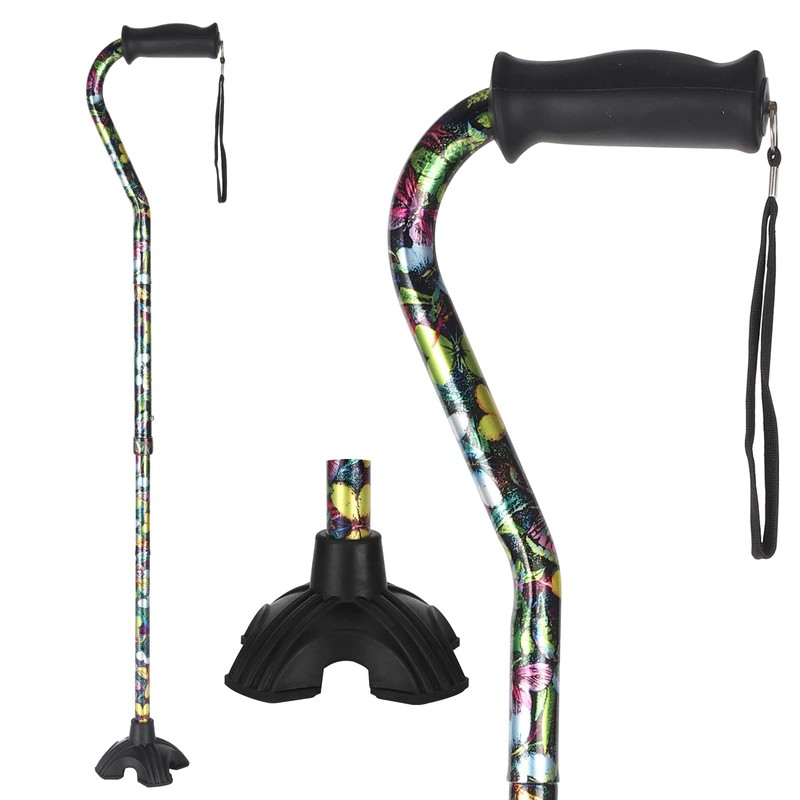 - [Soft silicone handle] The adjustable canes adopts a softer hand design and is ergonomically designed. It concentrates personal weight on the base of the crutches to obtain better balance and support. Use the offset and stylish cane, You will get a more relaxing experience.