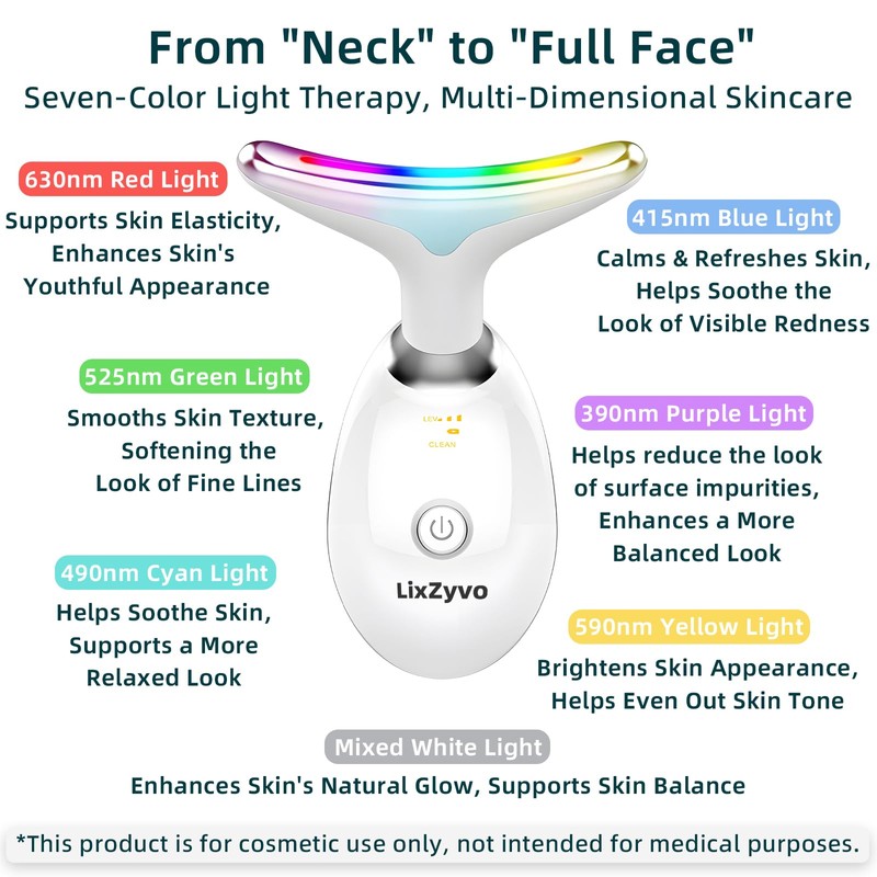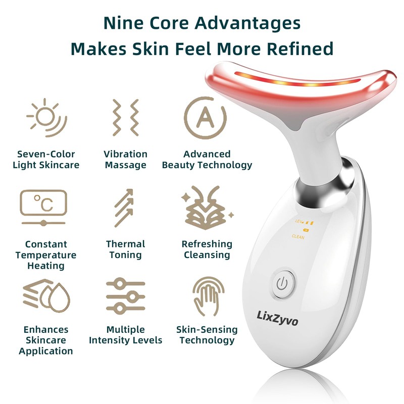 Transform your skincare routine with the LixZyvo Beauty Device, designed to provide a luxurious seven-color LED skincare experience. Crafted with advanced vibration massage, advanced beauty technology, and thermal toning, this all-in-one skincare tool helps enhance your skincare application and promote a refreshed and radiant look.