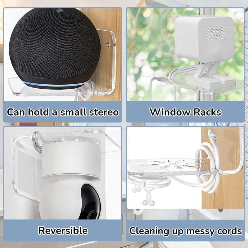 - 【Multifunctional】 These small acrylic shelves are perfect for organizing and displaying small items such as cosmetics, ornaments, photos, toys, spices, small plant pots, cameras or office supplies, great for home storage and display, they are perfect for any area with limited space.Compatible with various devices such as security cameras, speakers, and more, providing stable support.