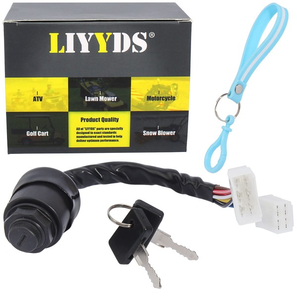 - Package includes: 1 x ignition key switch. 2 x keys. 1 x keychain.