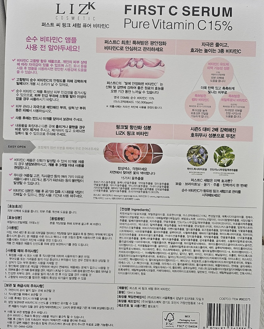 리즈케이 퍼스트씨 핑크 세럼 퓨어 비타민C10ml x 5개입