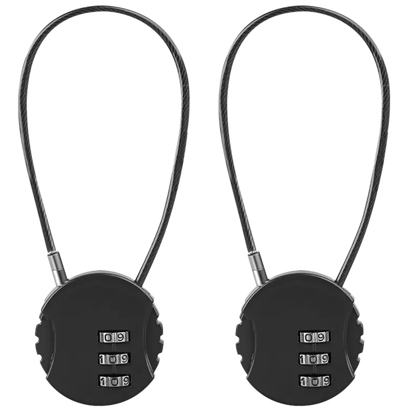 Lizbin 2 Pack Combination Lock 3 Digit Outdoor Waterproof Padlock, Locker Lock Gym Lock, Mini Wire Rope Combination Padlock, Code Locks Resettable Bag Luggage Gate Locks for Toolbox, Gate (Black)