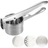 - 3 Interchangeable Discs: The stainless steel potato ricer set includes 3 different interchangeable discs, allowing you to easily switch between different textures of mashed potatoes. The coarse disc for coarse mashed potatoes, the medium disc for medium-textured mashed potatoes, and the fine disc for smooth mashed potatoes.