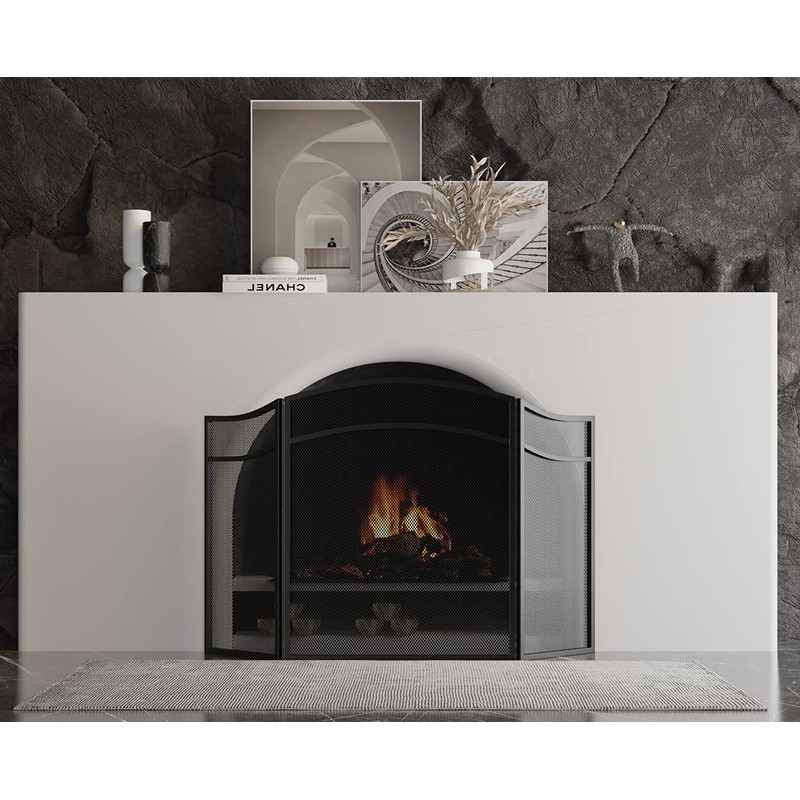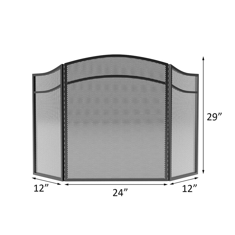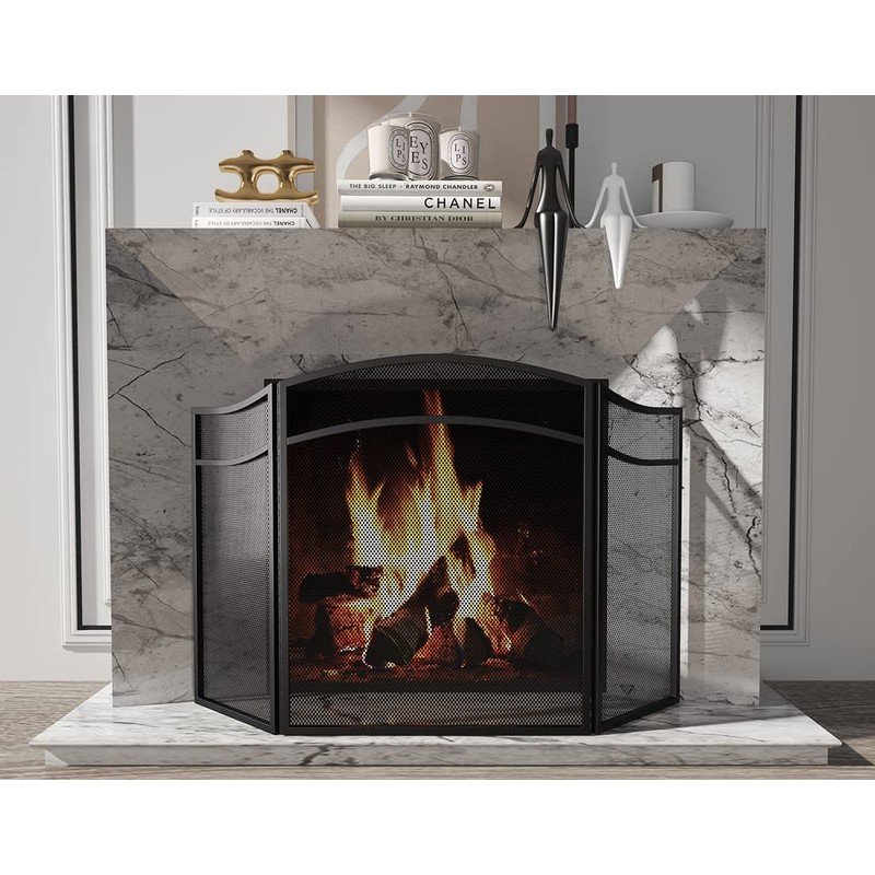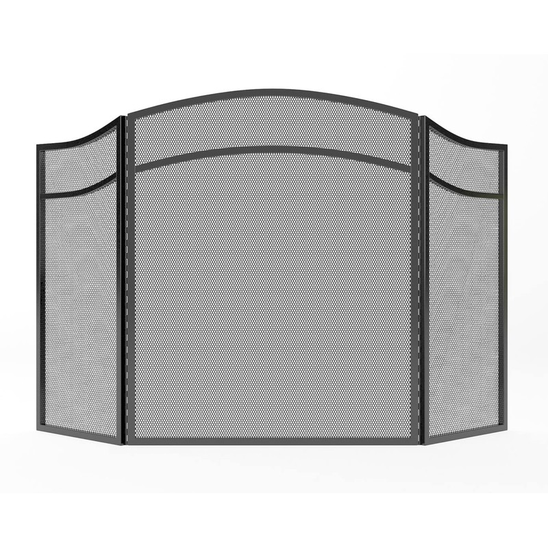 Lizh Metalwork 3 Panels Fireplace Screen with Arch Frame Simple Design 48"(L) x 29"(H),Black