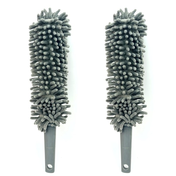 Lizzy 2 x Chenille Microfiber Duster | Handheld Noodle Duster, Chenille Wand Hand Dusters, Washable Removable Head | for Cleaning High Ceiling Fans, Cars, Blinds, Cobweb