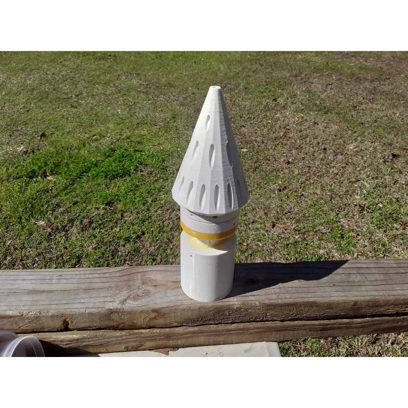 Wash Down Wellpoint for 4" PVC water well casing made of PETG plastic. Includes a check valve inside the point so dirt cant wash back into your well screen. Threaded for a 1" PVC pipe used to wash down the casing which is then removed when the correct depth is reached. Includes a template for marking the casing and SS mounting hardware to secure the point to the well screen. Custom sizes are available. Send a message.