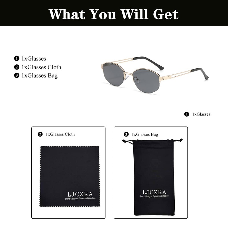 LJCZKA Oval Metal Sunglasses for Women Men Retro Oval Sunglasses Half Frame 90s Trendy Shades UV400 Protection