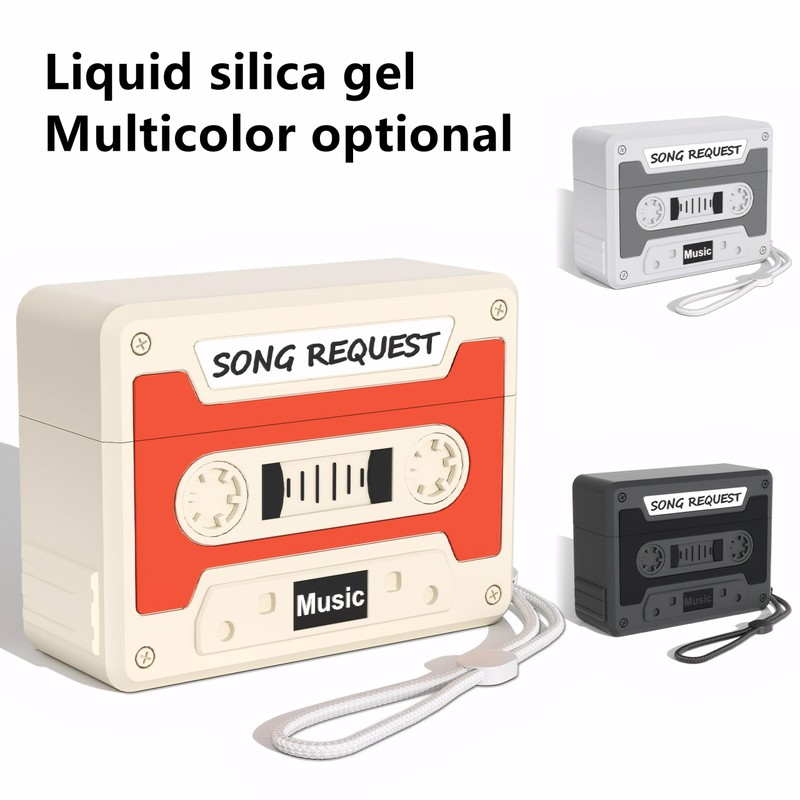 LJFLYXRI Case,Compatible with AirPods 4 (2024) (USB-C) Cassette Tape Design Soft Silicone Shock-Absorbing Protective Cover [Compatible with MagSafe] with Lanyard (Off-White, AirPods 4)