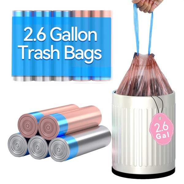 LJIACLEA Small Drawstring Trash Bags 2.6 Gallon Bathroom Garbage Bag 75 Count Trash Can Liner for Bathroom, Office, Bedroom, Kitchen Random Gold & Silver
