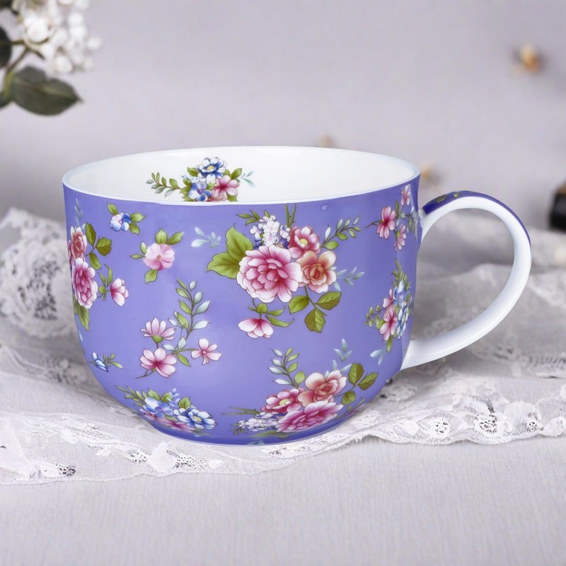 - The 24-ounce floral coffee mug is crafted from premium bone China. It is lightweight and thinner than ceramic mugs. It is equipped with large handles for easy gripping. These colorful and bright coffee mugs are perfect for soup or cereal during your daily meals