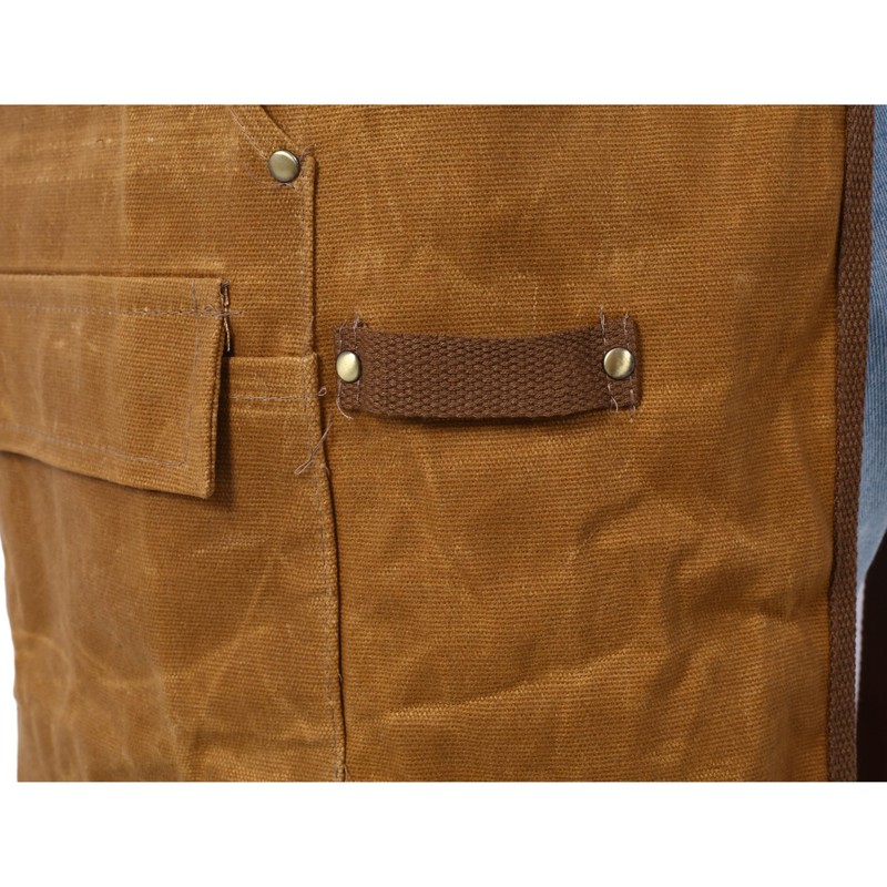 Engineered from 100% waxed cotton canvas, this heavy-duty tool apron is not only tough but also water-resistant, making it carpenters, machinists, and anyone needing reliable workwear. The double stitching provides exceptional , ensuring that this apron will stand up to the rigors of daily use.