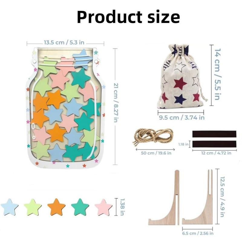 - 【Package Contentsn】: Package includes 1 x Star Reward Jar, 25 x Colorful Stars, 1 x Star Storage Bag, 1 x Jar Stand, 1 x Rope, and 2 x Magnetic Strips.