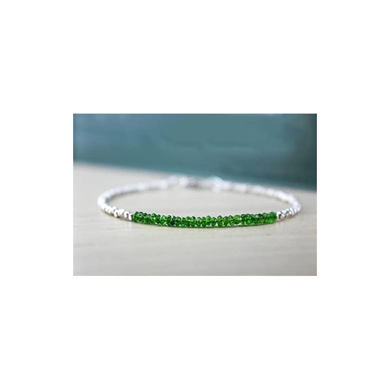 - Product details: gemstone type: chrome diopside, gemstone beads size: 3 mm, gemstone beads shape, rondelle, gemstone beads cut, faceted, gemstone beads colour, metal beads, silver, bracelet length: 7 inches
