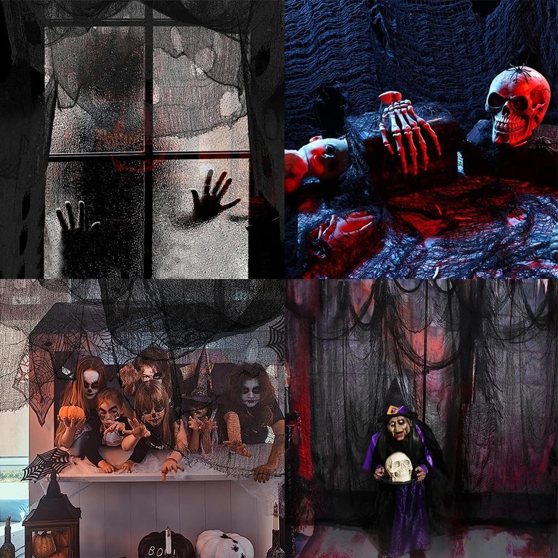 - 【DIY Horror Scenes】Our Halloween Hanging Cloth is easy to use, and can be cut into various shapes and sizes to create different scenes. You can easily create scary Halloween decorations by placing spooky cloth in the hall or garden. Perfect for any themed party or costume, the soft gauze can be freely adjusted to any shape Provides a realistic and scary look