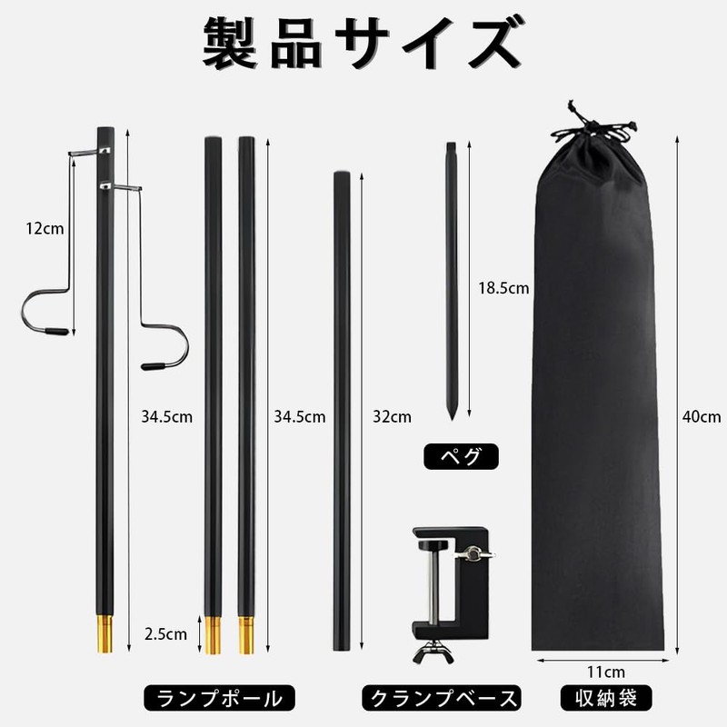 - Set Contents: Lantern poles x 4, hooks x 2, clamp base x 1, peg x 1, storage bag x 2, all necessary accessories are included