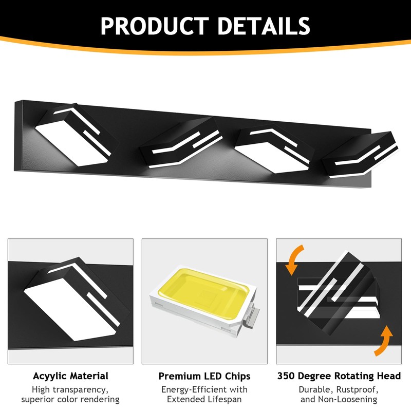 - 【350°Full-Coverage Lighting】 This black bathroom vanity light features an adjustable swivel head that targets light precisely to eliminate facial shadows during makeup, while the full 350° coverage ensures no dark spots, even for detailed tasks like eyeliner or contouring
