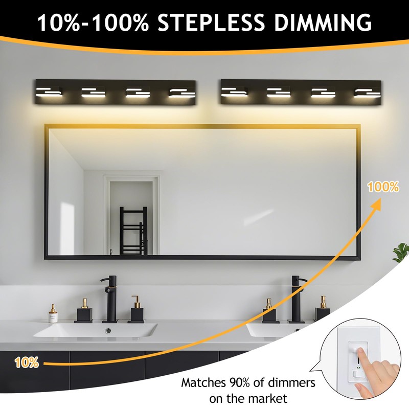 - 【5CCT & Dimmable】These bathroom light fixtures seamlessly shift from warm light to cool white light (2700K/3000K/4000K/5000K/6000K) with adjustable brightness (5%–100%), Easily controlled by your wall switch to suit different lighting needs (Dimmer switch not included)