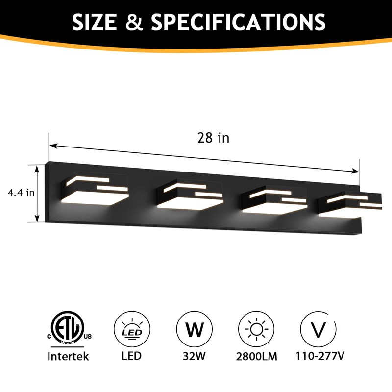 - 【High Brightness】 32W LED vanity lights for bathroom, emitting 2800 lumens of bright, flicker-free light. Provides brighter illumination than traditional 140W bulbs, perfect for makeup, grooming, and detailed tasks. The frosted acrylic lampshade evenly diffuses the light, offering clear, comfortable illumination while protecting your eyes from strain