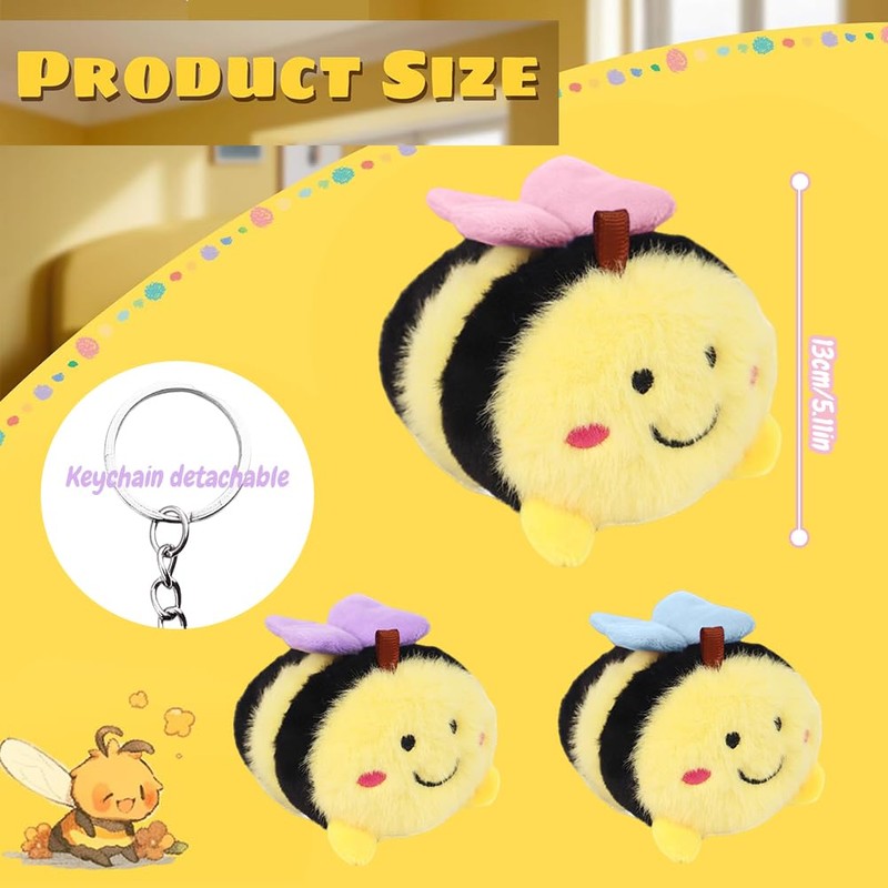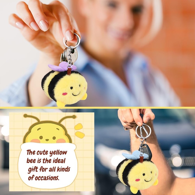 - 【Multiple Functions】 bee Plush Keychain Can be used as a decoration, hanging on a backpack, handbag, wallet, or on a car key, door key, room key,You can also decorate bedroom with it.