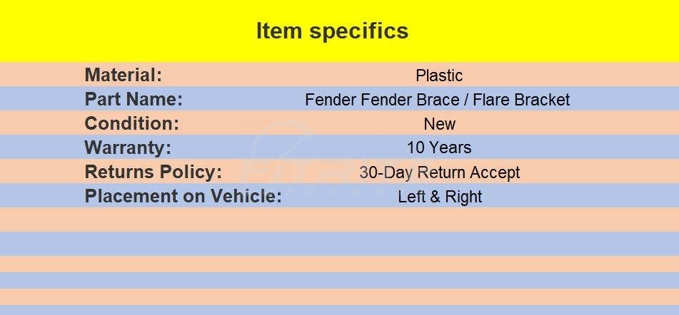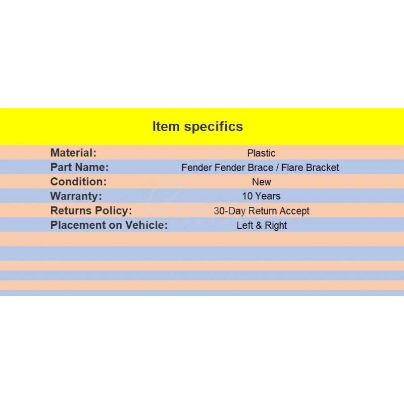 - Position: Front Left And Right Pair Set Fender Brace / Flare Bracket