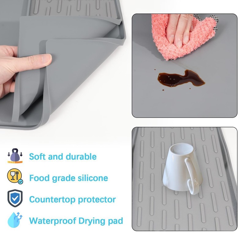 LKYLIVE Silicone Coffee Mat, 24'' x 16'' Bar Mat for Countertops, Bar Accessories Fit Under Coffee Maker, Dish Drying Mat, Heat Resistant,Grey