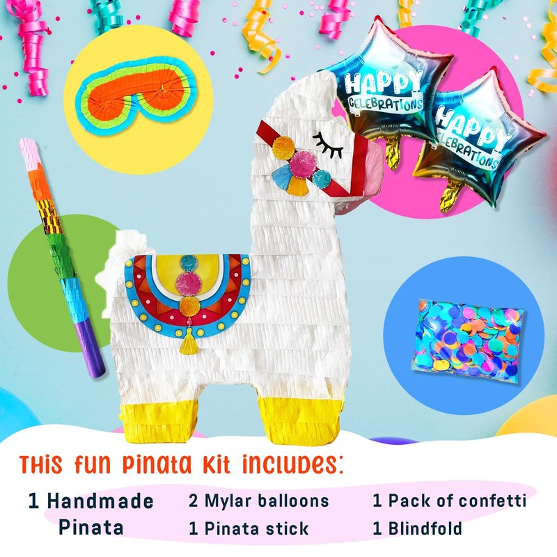 LLama Pinatas Perfect Party Favor & Decoration for llama Themed Birthdays, Mexican Theme Parties, Fiestas & Cinco de Mayo Includes Busterstick, Blindfold, Confetti and 2 Ballons