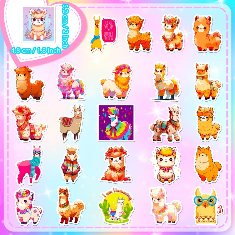 Llama Stickers 50 Pack Laptop Stickers,Vinyl Waterproof Stickers for Water Bottles Skateboard Scrapbook Bike Computer,Phone,-Graffiti Stickers Pack for Teens Girls Kids Adults(Alpaca)