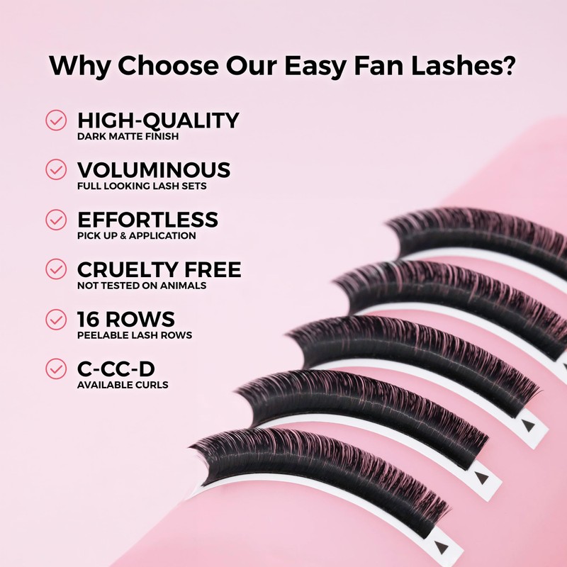 - ✅ EASY TO DETACH & APPLY: Easy Fan volume lashes are easily detached from the tray and applied to the natural lashes, blooming into stunning fans with minimal effort, saving you time and empowering you to create the perfect lash experience for each client.