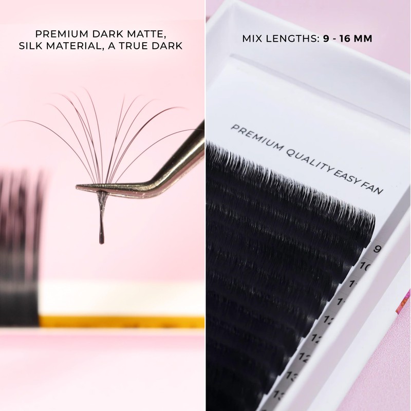 - ✅ PRECISION PINCHING: Crafted with precision in mind, professional Easy Fan lashes allow for easy pinching to create smaller bases, ensuring tailored volume to match your client's natural lashes. Feature a unique sticky base that prevents fans from separating and falling apart after picking them up.