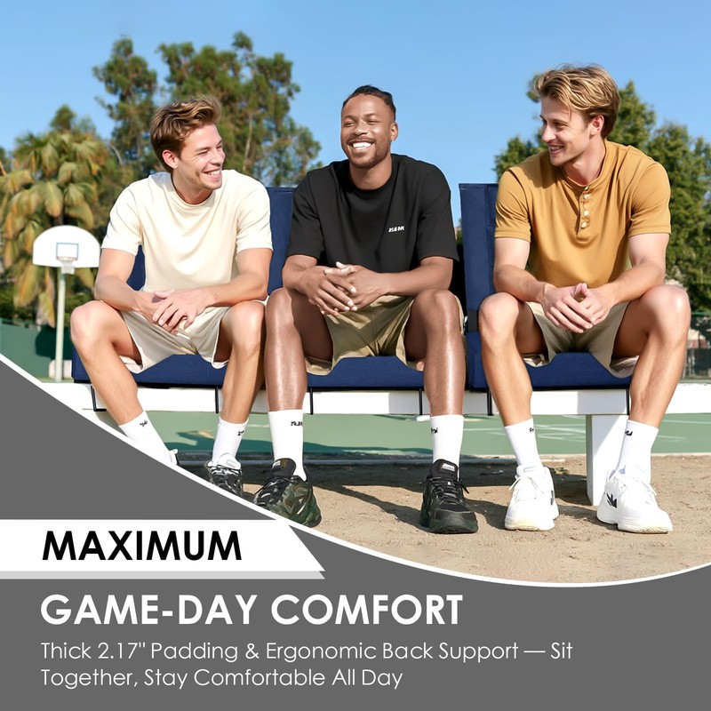 - Comfortable Stadium Seat: Experience game day like never before with our ultra comfortable bleacher chairs with back and cushion. Featuring a 2.17" high-resilience sponge and 15.6“ ergonomic padded backrest, this stadium chair cushion keeps you supported through the whole game without a butt and back sore.