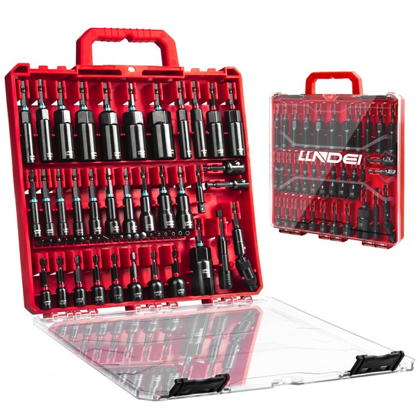 LLNDEI Magnetic Impact Nut Driver Set, 55PCS 1/4 socket set with Deep Driver Bit Sets Includes Bit Extension, Pivoting & Wing Nut Setters Compatible with Impact Drills & Deep Drivers