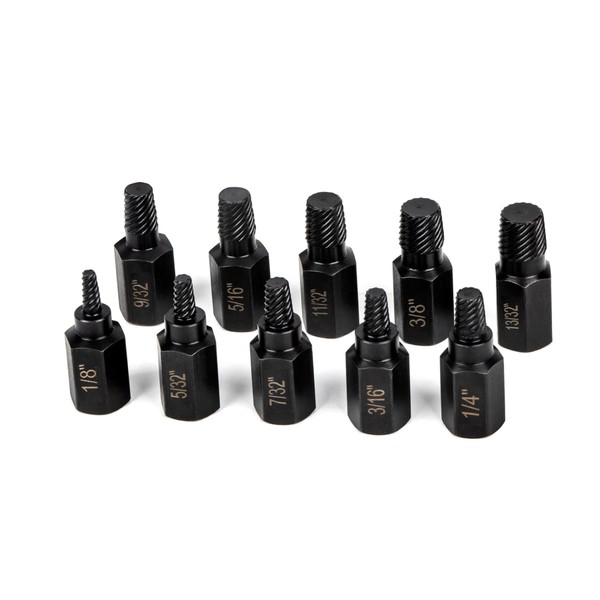 - 【MULTIPLE SIZES INCLUDED】 LLNDEI 10 Pieces screw extractor set include: 1/8", 5/32", 3/16", 7/32", 1/4", 9/32", 5/16", 11/32", 3/8", 13/32".