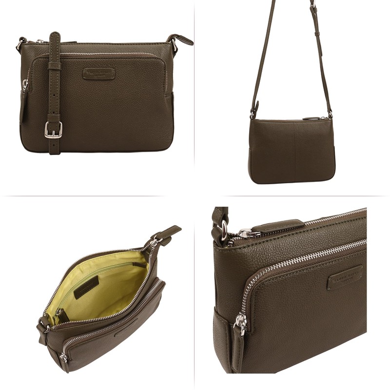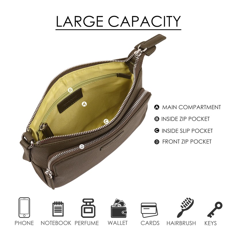 Lloyd Baker London – DEVAL Double-Zip Leather Crossbody Bag: Women's Functional Design in 100% Genuine Full-Grain Leather- BURNT OLIVE (Dark Green)