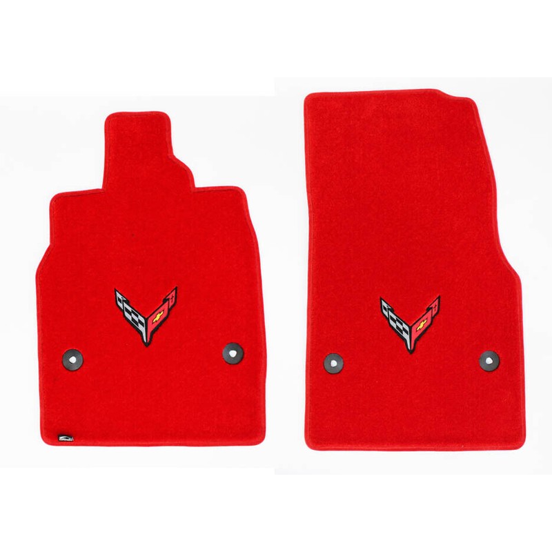 Lloyd Mats™ NEW! Adrenaline Red FLOOR MATS 2020-2024 CORVETTE C8 Flags Logo Embroidered