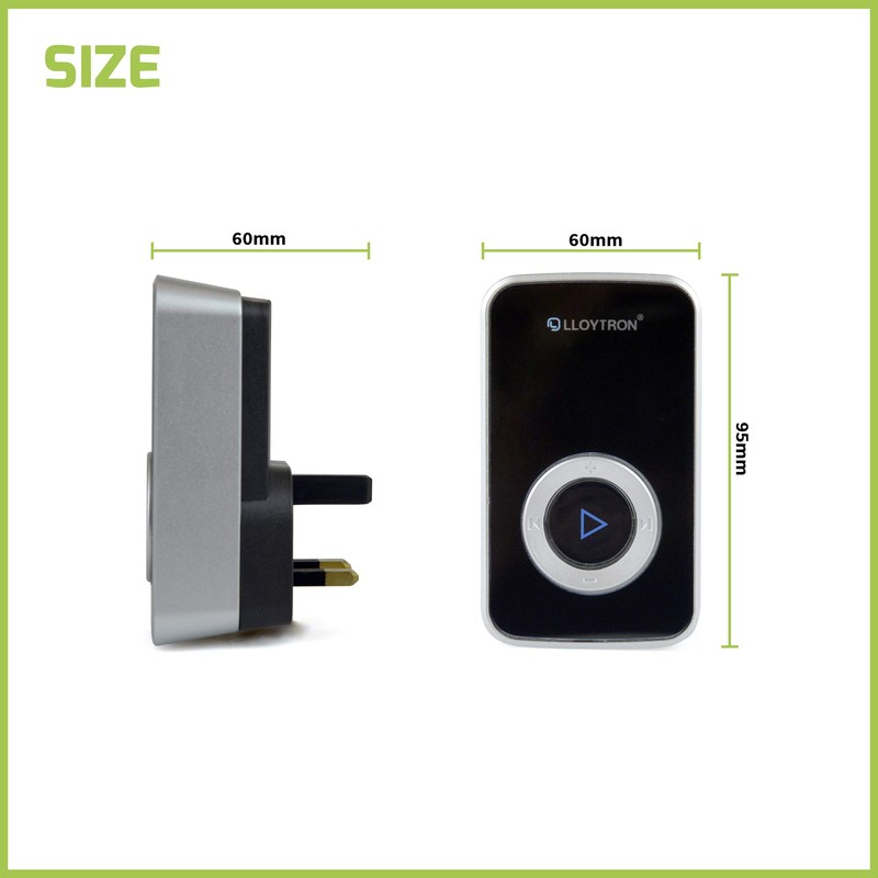 LLOYTRON® MIP System 3 Doorbell Accessory - 32 Melody Plug-in Chime Receiver - Replacement or Additional Receiver for MIP System Transmitter - 200m Wireless Range - Volume Control - B7935BK - Black