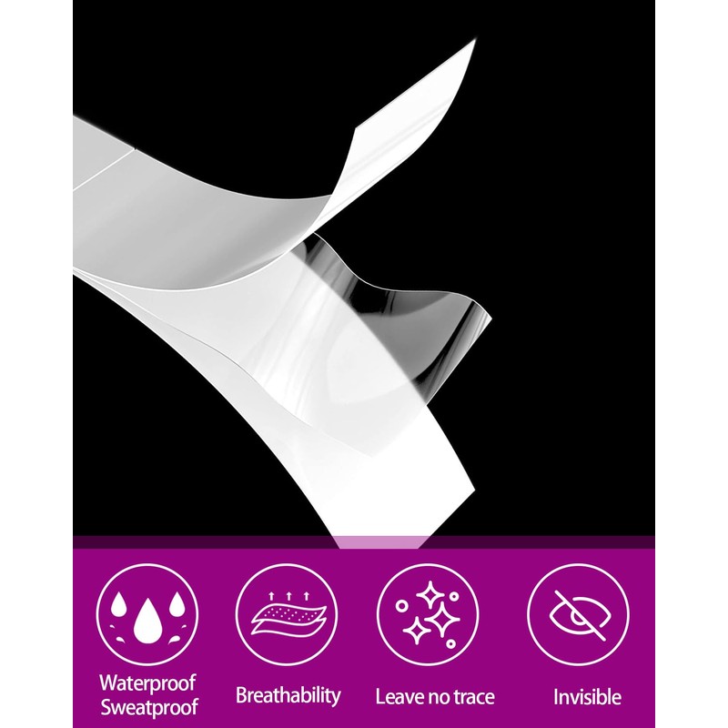 - CONFIDENCE TO WEAR: There are 1/2”(1.27cm)(Medium Size) and 3/4” (1.9cm)(Large Size) strips; each size is 3” (7.62cm) length, 72 or 144 strips; transparent and invisible in color on your skin, no holes and lumpy marks left on your cloth like metal pins. This tape is built to last for full day use with free movements, throw your embarrassment away due to improper size and find you a calm mind and confidence to deal with social contact and business.