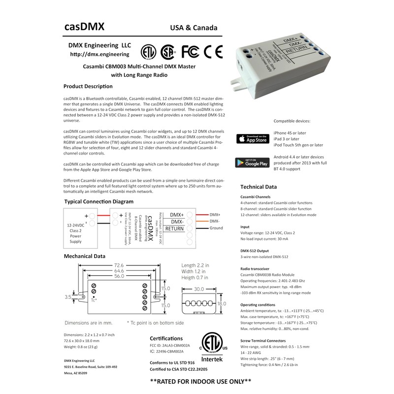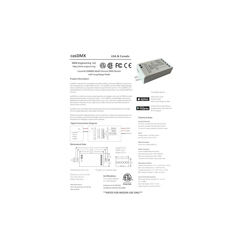 LLS | casDMX Casambi Enabled 4-Channel DMX Master | DMX Engineering