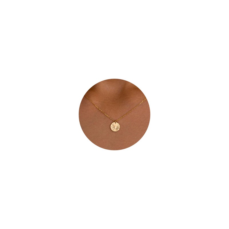 - Gold Coin Sun Necklace :Sun symbolize warmth, optimism, enthusiasm, strength and loyalty; The delicate sun necklace brings warmth and strength to the wearer