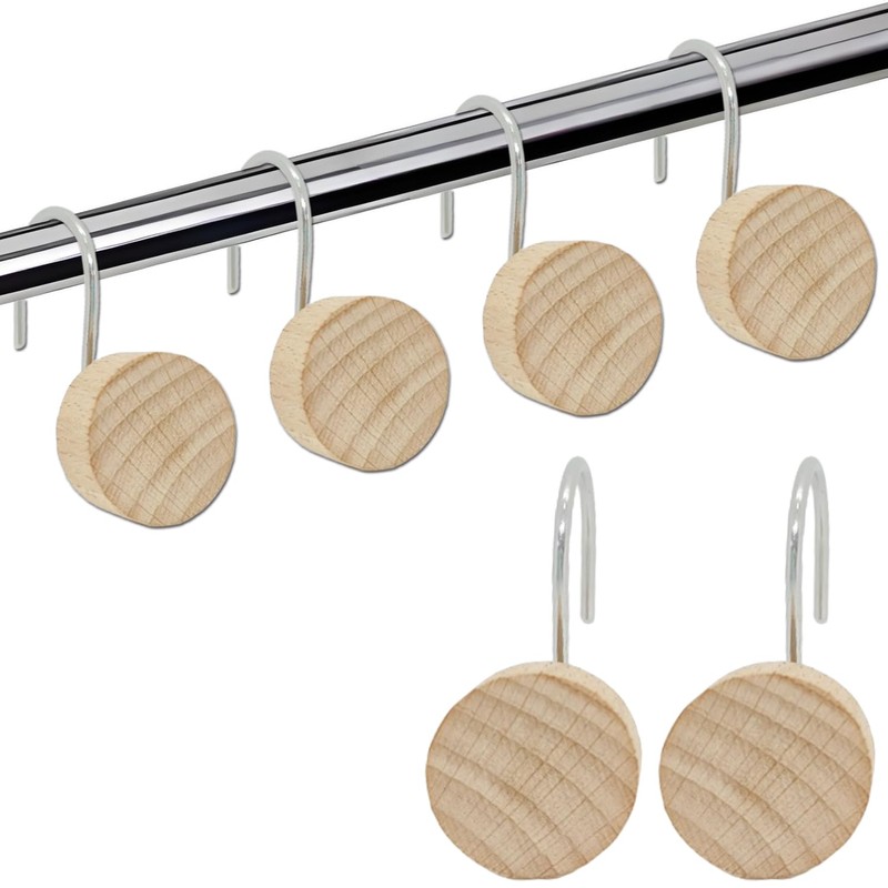 Packing:Contains 12 wood shower curtain hooks. Pack in boxes or bags.