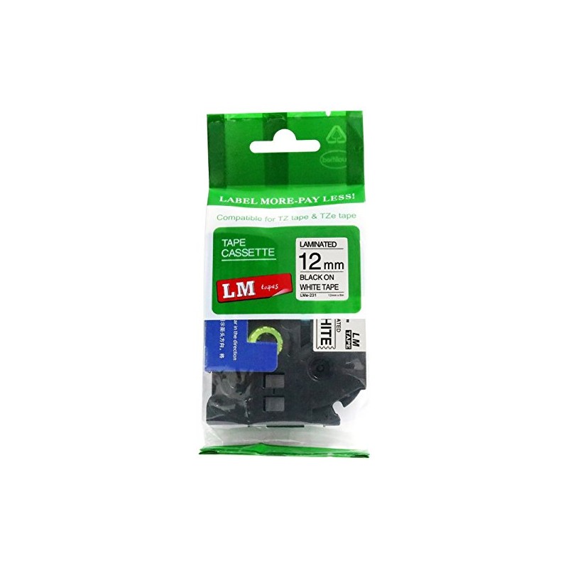 LM Tapes - 1/2" (12mm 0.47 Laminated) Black on White Compatible TZe P-touch Tape for Brother PT-2100, PT2100 Label Maker with FREE Tape Guide Included